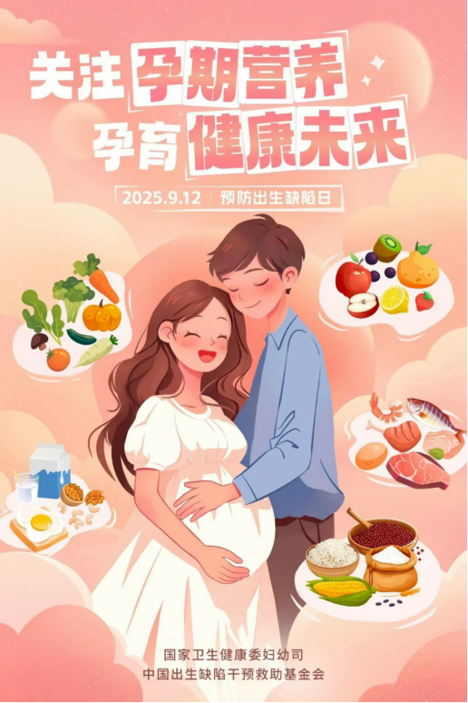 2025年9月12日是第21个预防出生缺陷日,今年活动主题是:关注孕期营养,孕育健康未来。旨在引导育龄人群和孕产妇增强营养健康意识,掌握营养健康及出生缺陷防治知识,践行健康生活方式,科学孕育健康新生命,降低不良妊娠结局及出生缺陷发生风险。