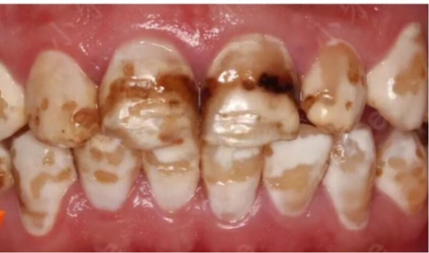 3.重度(缺损型): 除了严重的颜色改变,牙釉质还会出现凹凸不平的坑洼、缺损,甚至可能引发牙齿敏感。