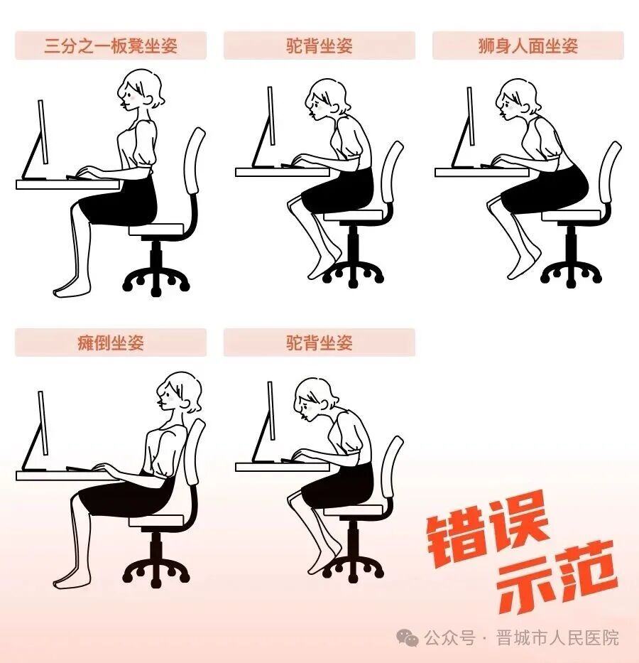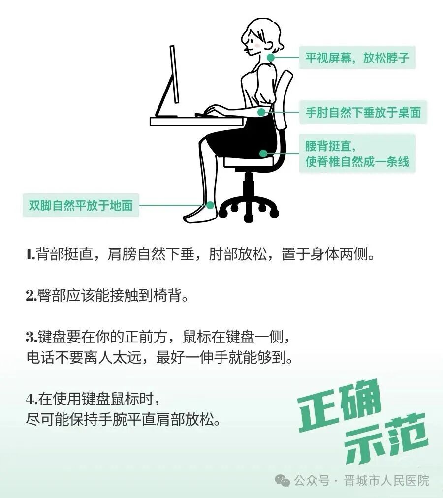 避免久坐不动:伏案工作、学习、办公时,保持腰背挺直,不要含胸驼背。每隔30—40分钟起身活动,做简单的转头、耸肩、拉伸,让紧张的肌肉得到放松。