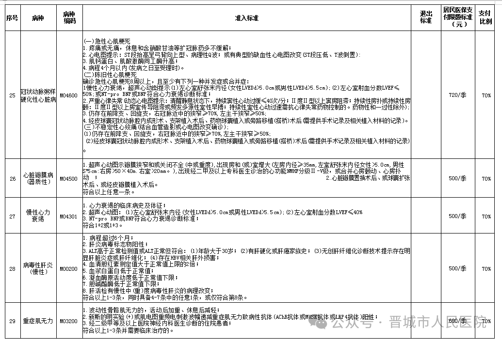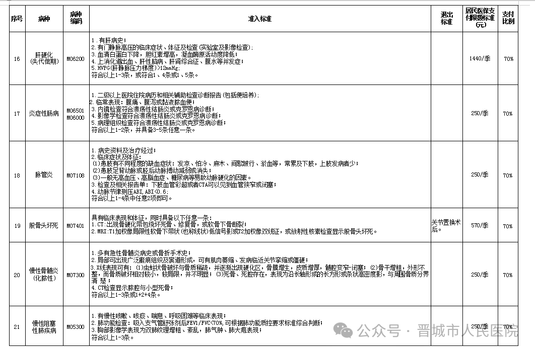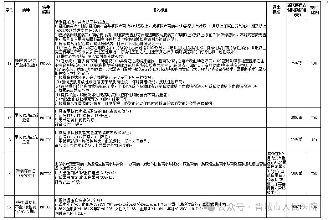 我市慢特病保障范围