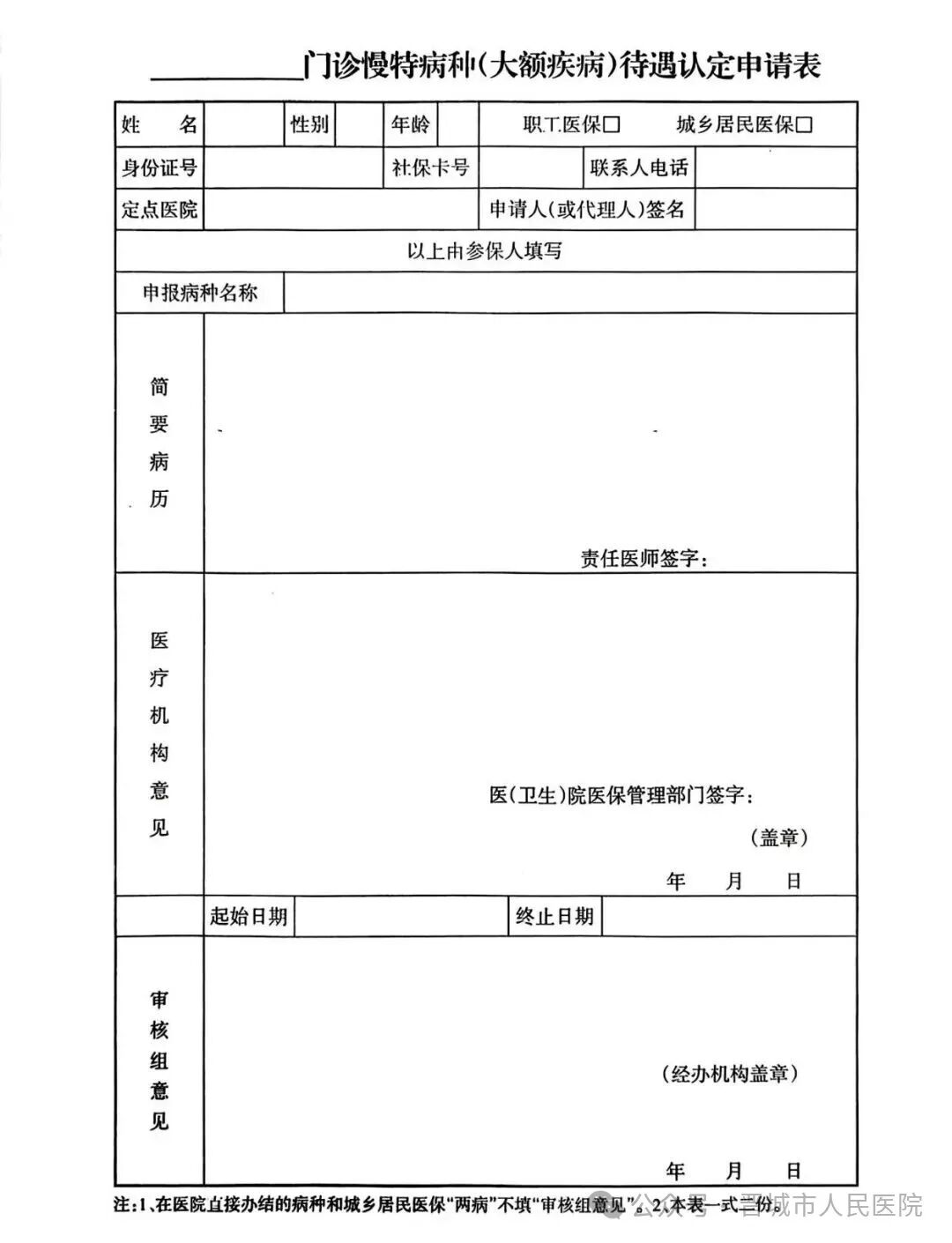 2. 患者挂申请病种相应科室主治医师以上填写申请表。