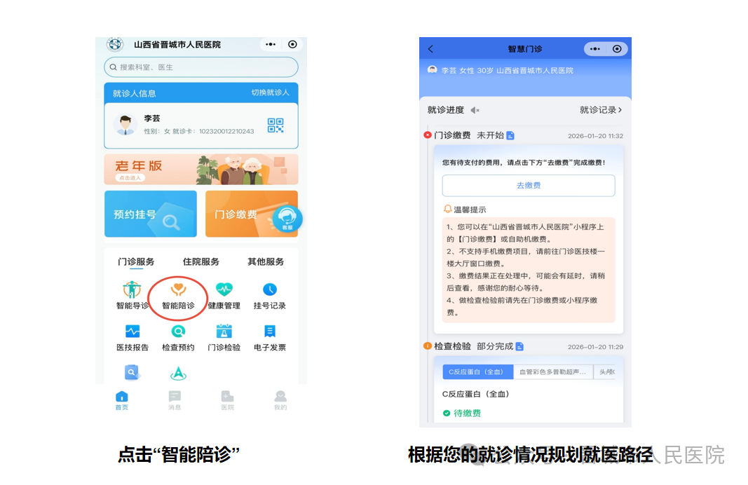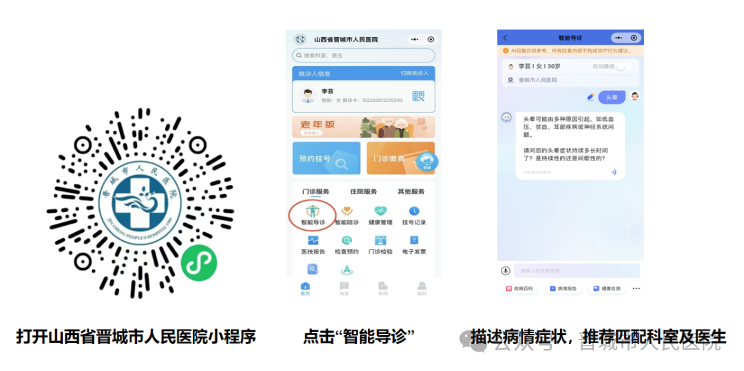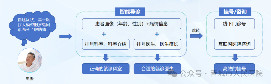 智能陪诊: 结合您的病情、挂号科室,为您规划和推荐个性化的就医路径,解答疑问,引导有序就医。