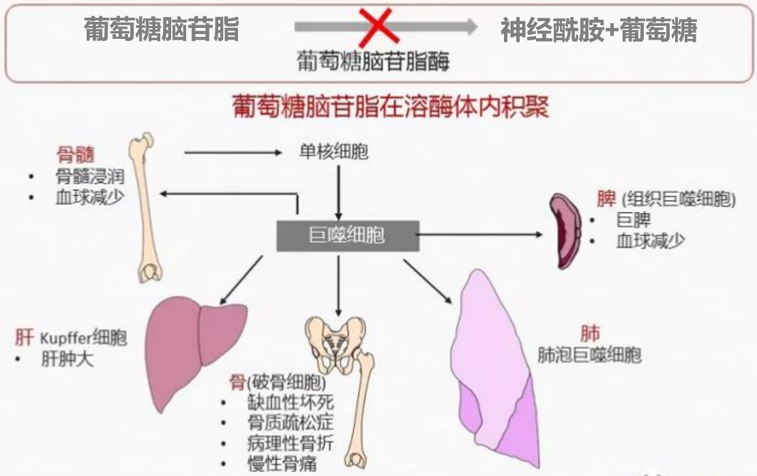 戈谢病(Gaucher disease, GD)是一种由葡萄糖脑苷脂酶(GBA)基因变异引起的常染色体隐性遗传性溶酶体贮积病,表现为多系统的脂质沉积, 受累的血液、肝脾、骨骼及神经系统功能受损而出现相应的临床表现,导致肝脾肿大、贫血、血小板减少、骨痛以及骨骼病变,发育迟缓而可能终身残疾甚至死亡。