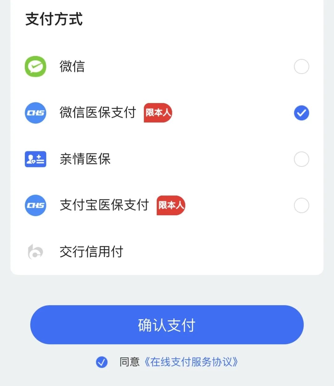 • 医保支付挂号:请您在进行线上挂号时,优先选用医保支付方式。