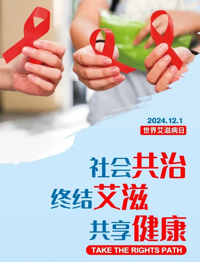 2024年12月1日是第37个 “世界艾滋病日”,其宣传活动主题为“社会共治,终结艾滋,共享健康”(Take the rights path)。此主题旨在号召政府、部门、单位、个人等各方行动起来,共同担起防艾责任,昂首迈向2030年终结艾滋病公共卫生威胁的目标,形成强大合力,共建健康中国,共享健康成果。