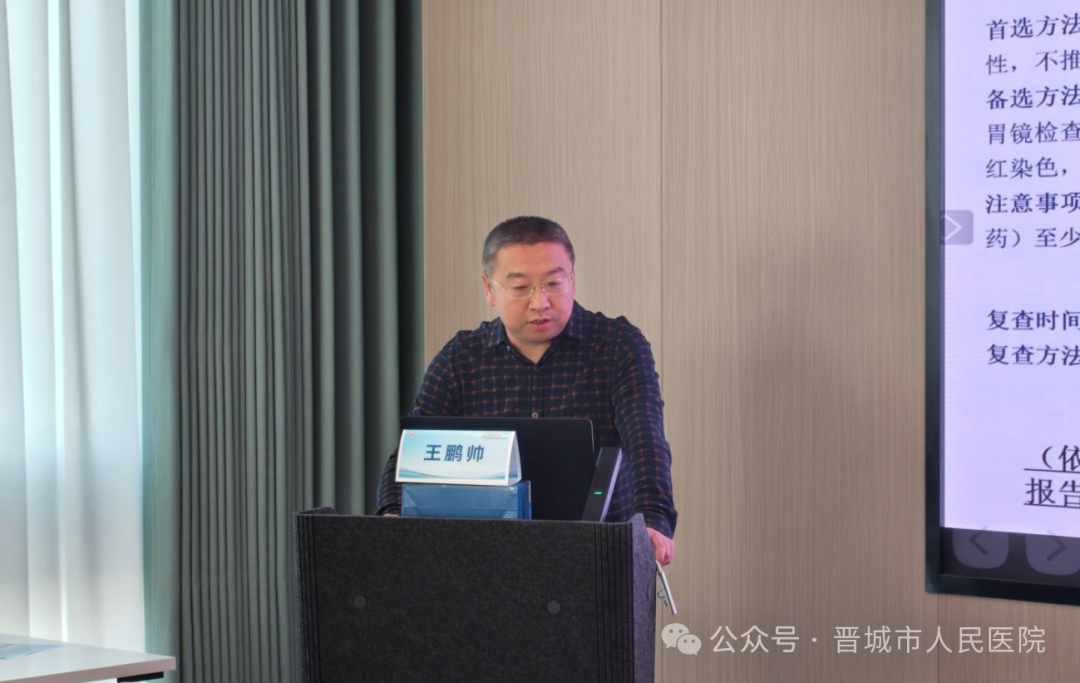 在中心建设汇报与评审环节,晋城市人民医院消化内科副主任王鹏帅首先详细汇报了本院HP规范化诊治中心的建设情况。此后,长治医学院附属和济医院消化内科主任王丽君、临汾市第二人民医院院长李建义、高平市人民医院消化内科主任崔冬冬、沁源县人民医院内一科主任张伟依次登台,分别汇报了各自医院在中心建设方面取得的成果、形成的特色以及面临的挑战。