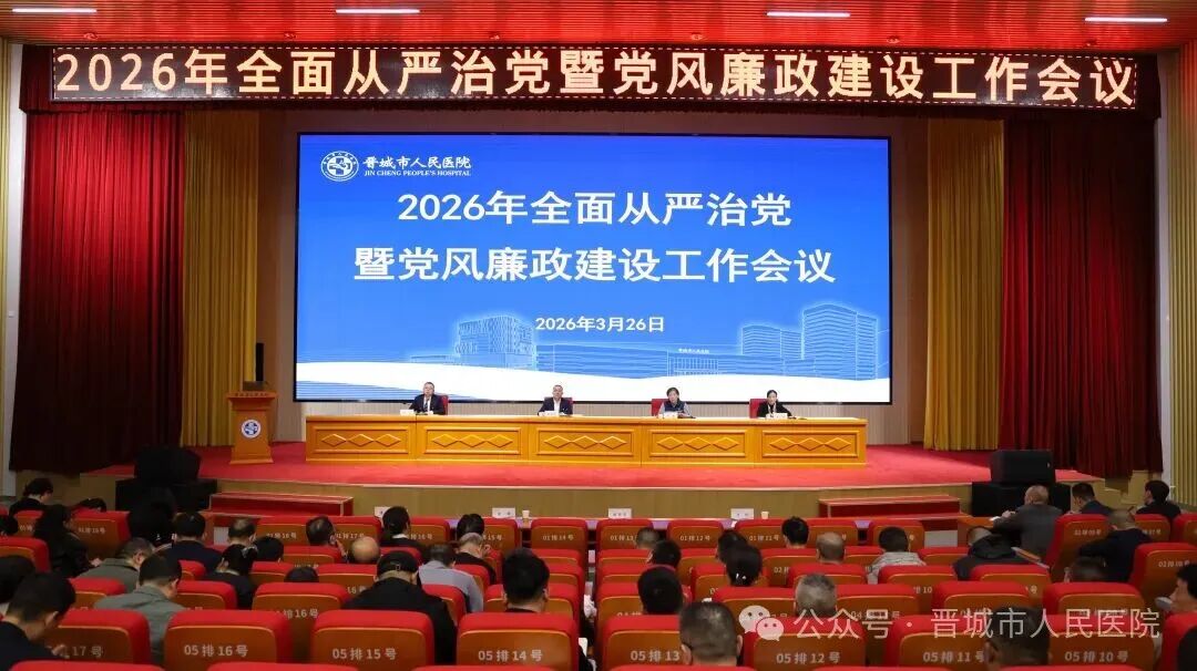 3月26日下午,晋城市人民医院召开2026年全面从严治党暨党风廉政建设工作会议,总结2025年医院全面从严治党工作,并对今年重点任务进行安排部署。院领导班子成员、全体中层干部、各党支部委员、副高及以上职称医师、主诊医师等参加会议。会议由党委副书记、院长王霞主持。