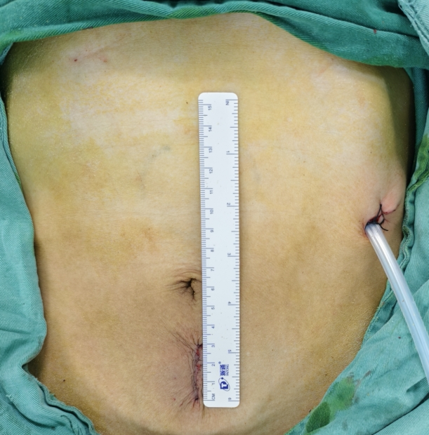 患者为一名59岁男性,因“间断恶心、呕吐、腹痛、腹胀1月”入院治疗,胃镜检查提示“胃癌、胃潴留”,病检提示“胃窦腺癌,中低分化,术前分期cT3N1M0”。普外科一病区金建云团队对病人各项检查结果进行详细分析,并在征得患方同意后,决定对患者实施单孔加一全腹腔镜胃癌根治术。2 月 5 日,经团队密切配合,手术顺利完成,患者术后状态良好,已于近日康复出院。