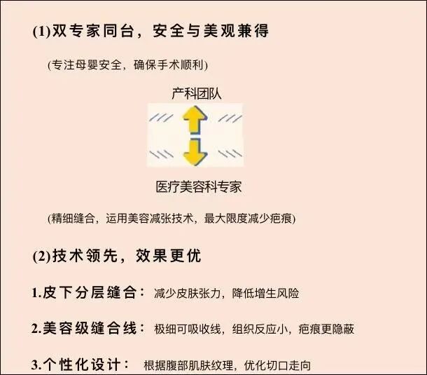 剖腹产美容缝合了解一下~我院产科与医疗美容科联手,为追求完美的您,独家推出“剖腹产美容缝合”专项服务,让新生与美丽同步绽放!