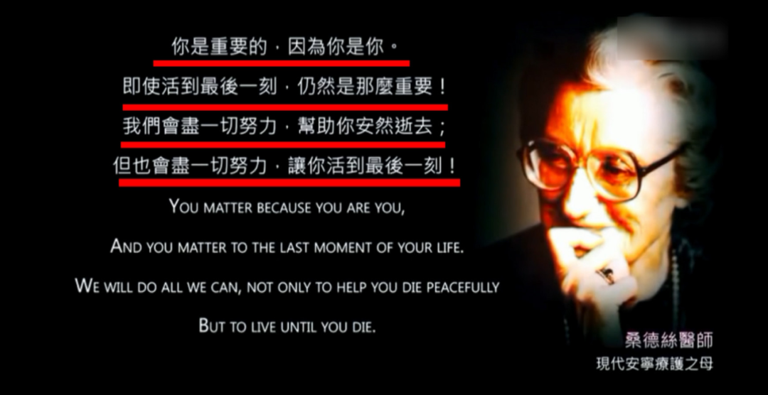 正如全球安宁疗护创始人西西里・桑德斯医师所说:“我们必须关心生命的质量,一如我们关心生命的长度。你是重要的,因为你是你,直到你活到最后一刻仍是那样重要。我们会尽一切努力让你安详逝去,但也尽一切努力让你活到最后一刻。”