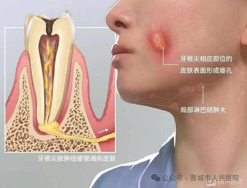 比如蛀牙没及时治,慢慢发展成根尖周炎;或者智齿反复发炎(冠周炎),细菌在牙根处不断繁殖,形成了脓液。