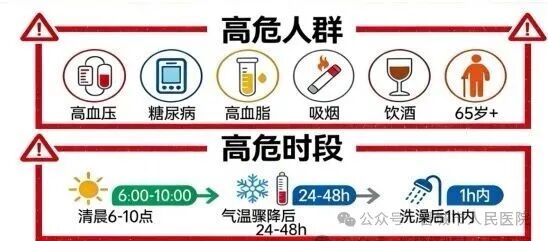 气温骤降后 24-48 小时(血管突然收缩);