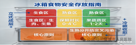 2. 存放科学:熟食放上层,生食放下层;所有食物密封保存;标注存放日期。