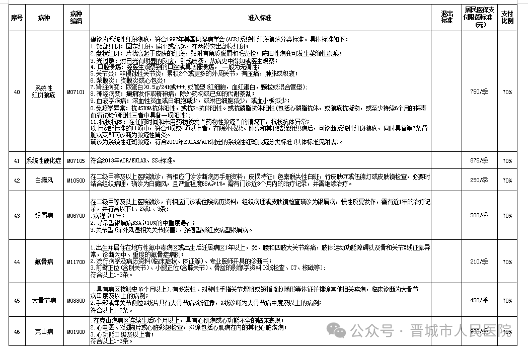 我市将46种疾病纳入门诊慢特病保障范围,执行全省统一的医学准入与退出标准。