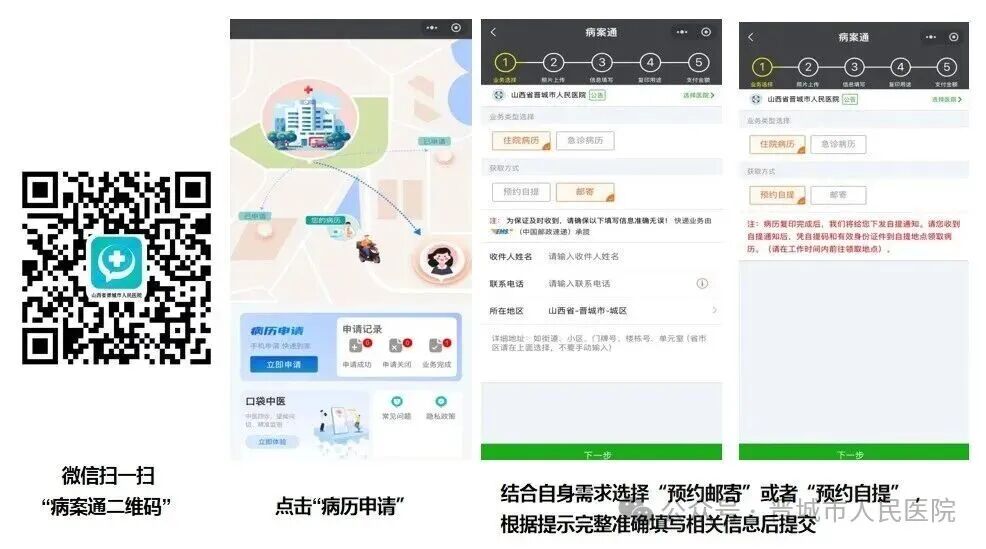 1.门诊患者就诊后可立即请医生协助打印病历。若就诊当日未打印病历,可选择在接诊医生出诊时寻找医生协助打印病历。若前来打印门诊病历时,接诊医师未出诊,须携带有效证件(身份证或户口本等)前往门诊办公室(3楼B区)填写《晋城市人民医院门诊病历打印申请表》,经工作人员审核通过后协助打印。特殊情况请联系96559咨询。