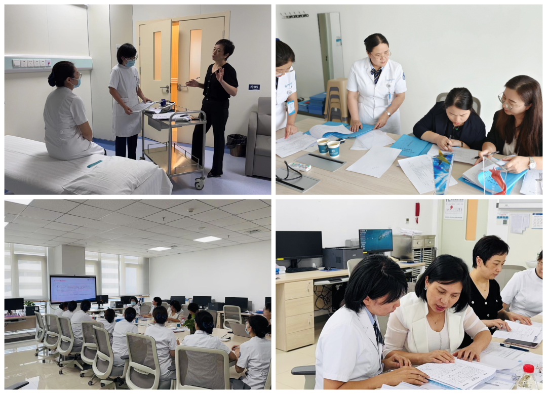汇报结束后,专家们以严谨的态度、专业的视角,对我院护理部及各专科护士培训基地的各项设施、教学资源、师资力量、培训课程等进行了全面细致的检查和评估。他们深入病房、示教室等地,与医护人员进行交流,同时对基地带教老师的授课能力和实操能力等方面进行了严格的考核,了解实际情况,提出宝贵意见。