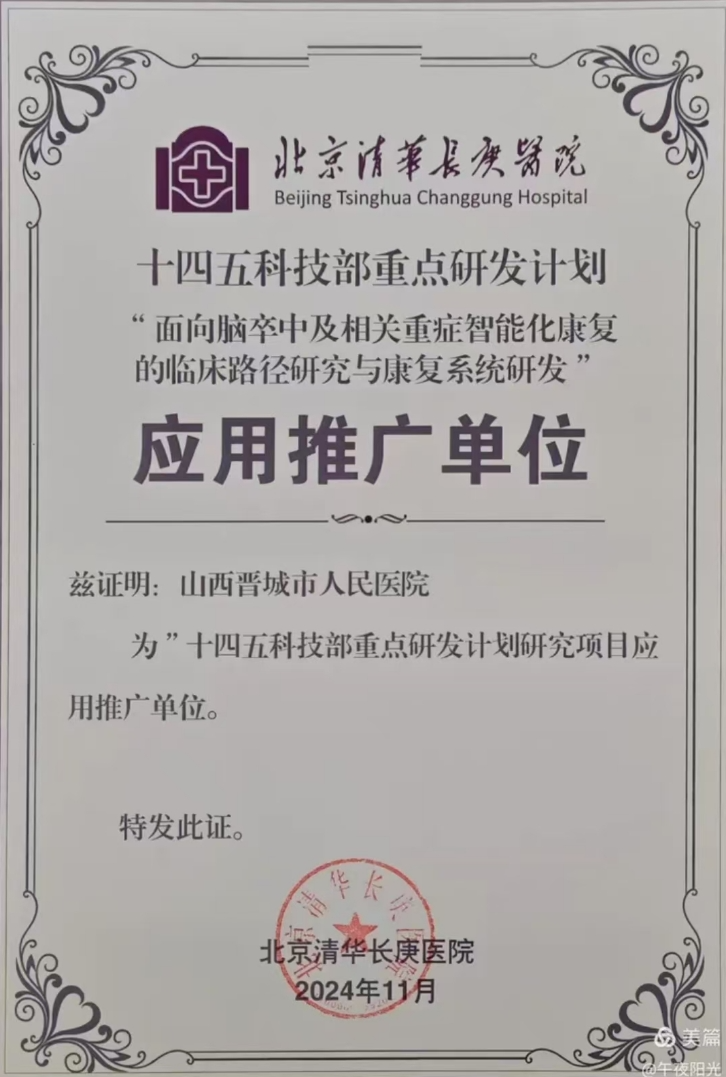 我院成为“十四五科技部重点研发计划——脑卒中重症康复智能化研究”应用推广单位