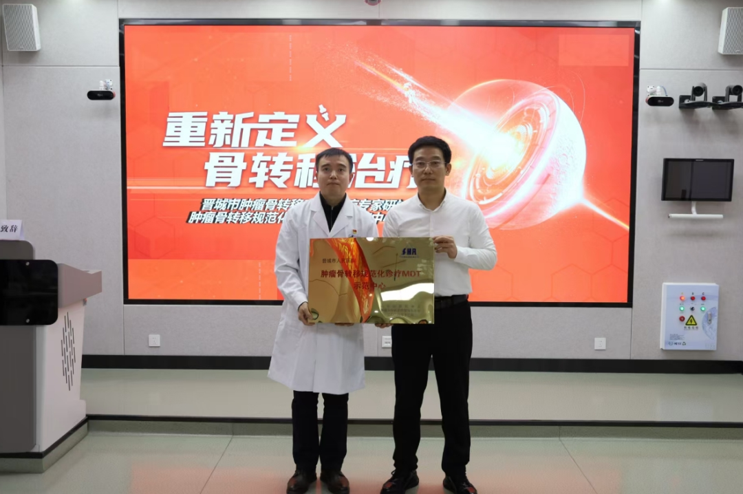 会议主席宋翔主任与晋城市人民医院肿瘤中心三病区金亮亮主任完成了肿瘤骨转移规范化诊疗MDT示范中心授牌仪式,晋城市人民医院作为第五家示范中心,我们正逐步从 “补短板” 走向了 “锻长板”, 力求让每一位患者都享受到最合适、最适宜的治疗。