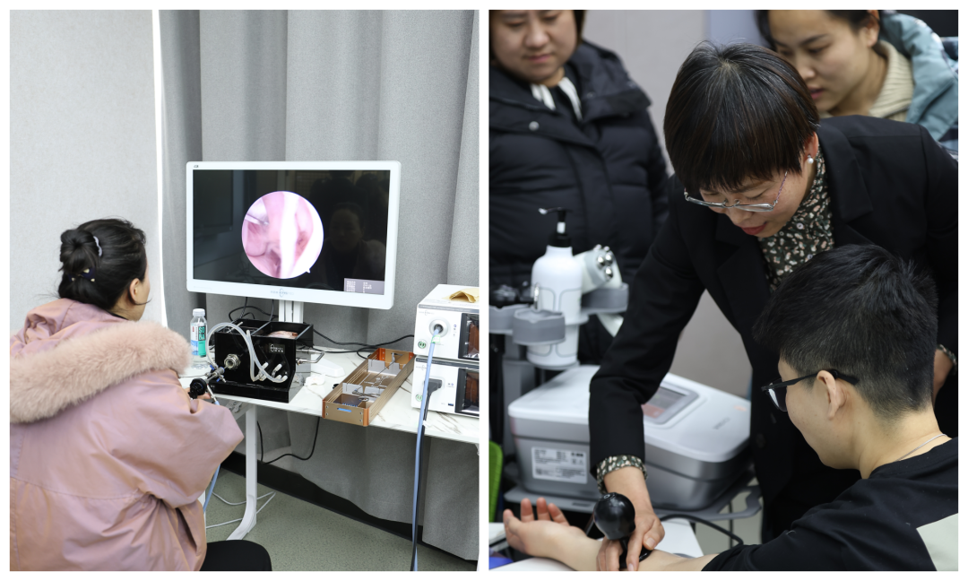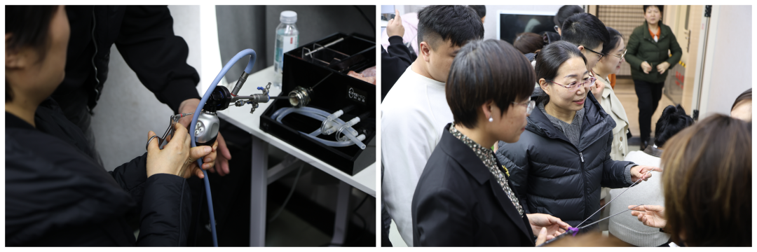 实操培训环节将培训班氛围推向高潮。学员们分组在带教老师的悉心指导下,亲自动手操作宫腔镜设备,从器械的正确使用到手术模拟,进行了系统规范的训练。通过实际操作,学员们不仅熟练掌握了设备的操作流程,更提升了临床技能水平,为今后在临床工作中熟练应用宫腔镜技术奠定了坚实基础。
