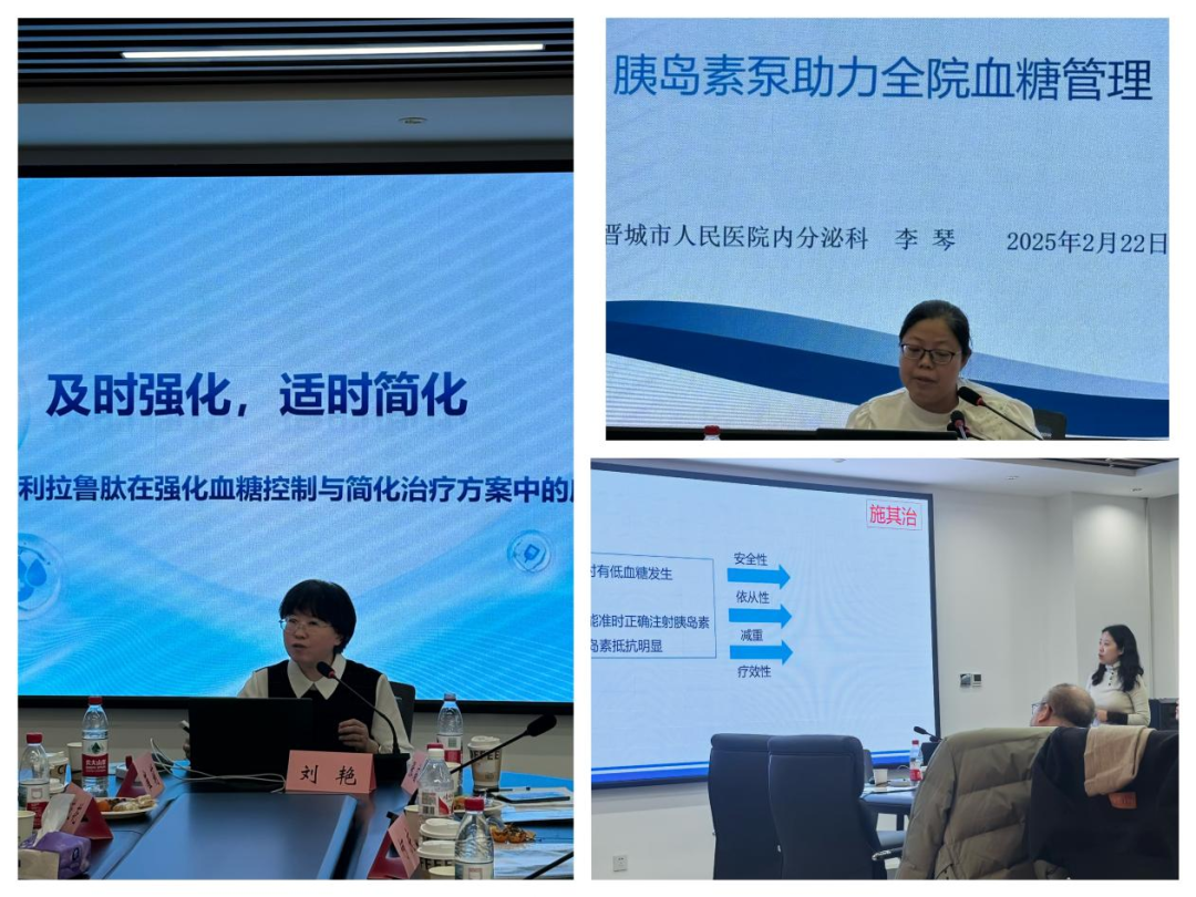 在热烈的讨论环节后,刘艳教授带来《及时强化,适时简化》的主题分享,深入探讨糖尿病血糖管理的策略与技巧。晋城市人民医院李琴医生和刘苗苗医生分别就《胰岛素泵在全院血糖管理中的应用》《住院患者血糖管理经验分享》,毫无保留地分享了在实际工作中的宝贵经验,为其他医院和科室开展血糖管理工作提供了有益借鉴。