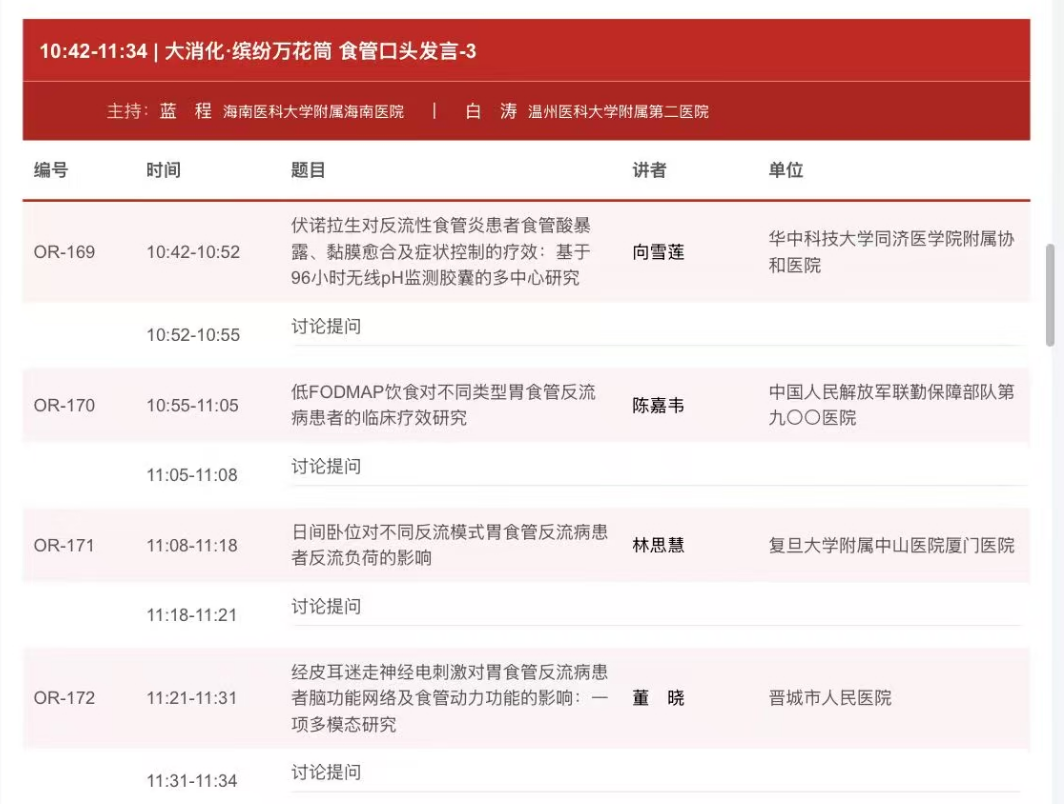 我院消化内科范学科团队受邀参会。董晓医师在“大消化・缤纷万花筒食管口头发言”板块中,以《经皮耳迷走神经电刺激对胃食管反流病患者脑功能网络及食管动力功能的影响:一项多模态研究》为题进行学术汇报,展现了我院在消化疾病研究领域的探索与成果。