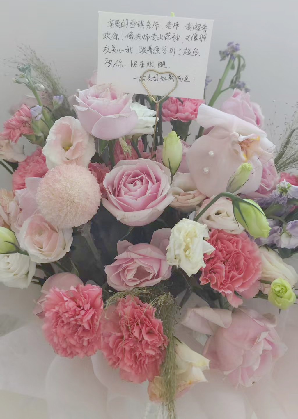 “快乐永随,一切美好如期而至”——卡片的结尾寄语,不仅是学生对老师的祝福,更是这段师生情谊的生动注脚。这束花虽小,却凝聚着护理教育的温度:它不仅是知识的传递,更是心灵的滋养。在冰冷的医疗器械与繁忙的病房之间,雪琪老师用专业与真诚浇灌出教育的繁花,也让“亦师亦友”的关系成为护理团队中温暖的光。