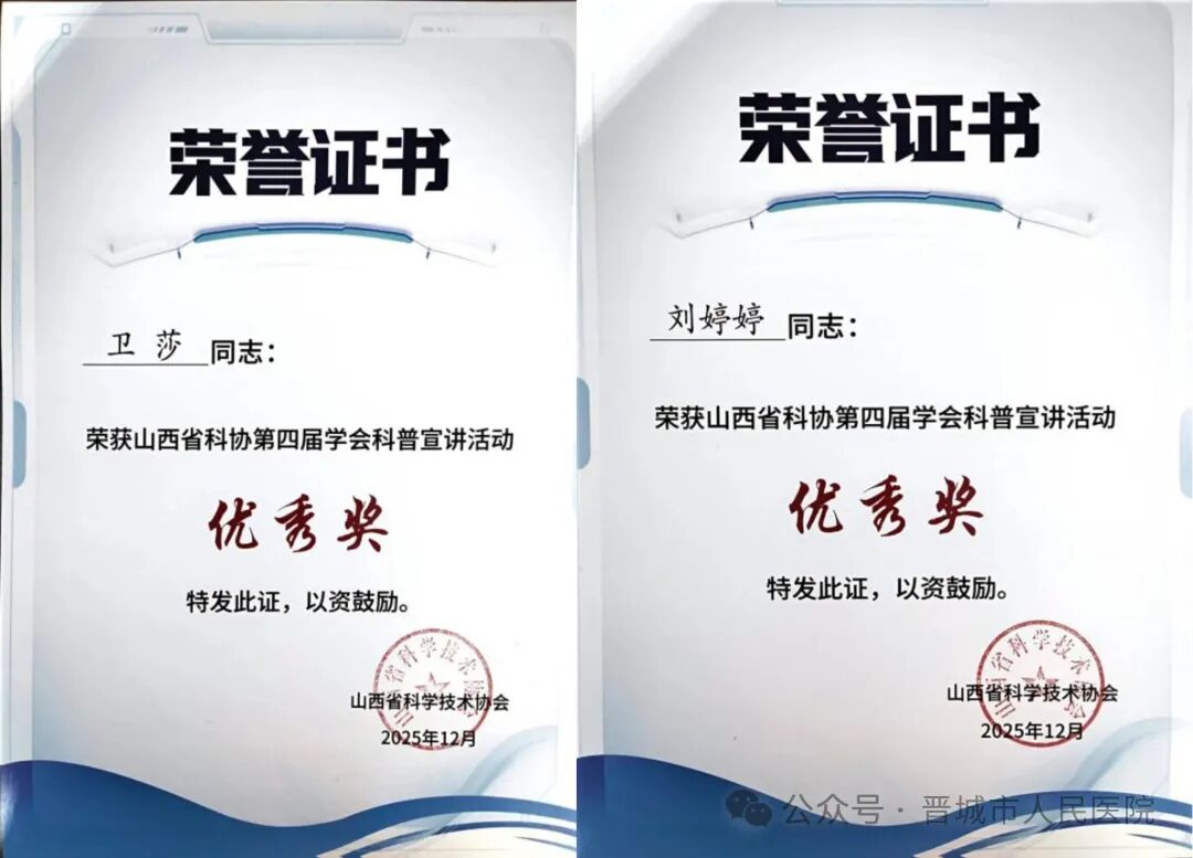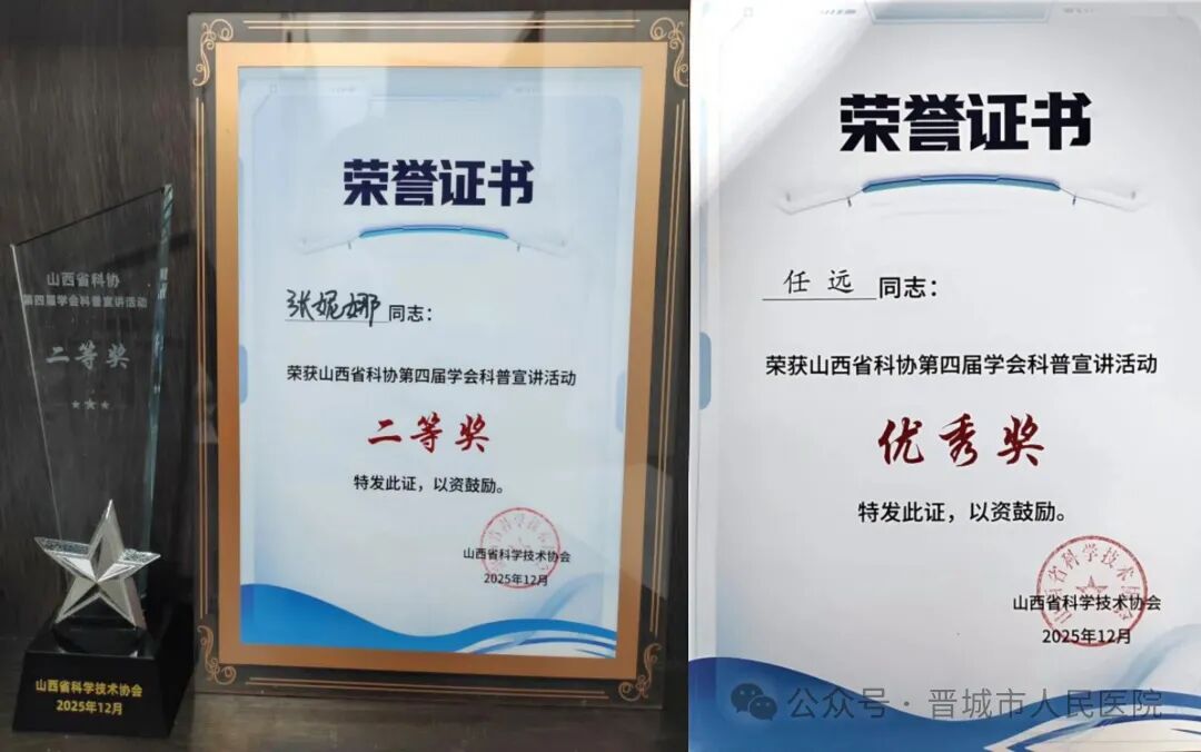在全国首个 “科普月” 的浓厚氛围中,由山西省科学技术协会主办的山西省科协第四届学会科普宣讲活动圆满落幕。本次活动以 “提升全民科学素质 夯实科技强国基础” 为主题,覆盖省科协所属各类省级学会、协会及研究会,历经市级推荐、省级遴选两大环节,最终70余项优秀科普作品脱颖而出入围现场赛,成为一场汇聚全省各领域科普力量的盛会。在激烈角逐中,我院表现亮眼、斩获佳绩,共有4项作品成功入围,最终喜获二等奖1项、优秀奖3项,充分彰显了我院在健康科普领域的扎实功底与良好风貌。