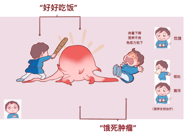 入院后,肿瘤科为患者行空肠营养管置入,开通营养通道,肿瘤科与临床营养部一同查看病人后,制定了综合治疗方案。包括抗肿瘤治疗以针对病因;将营养治疗作为基础;进行代谢调节以逆转肿瘤营养状况;修复维持胃肠道功能以提供通道;减少消耗以增加摄入量,改善生活质量;同时进行心理、运动调节,多种机制共同参与。