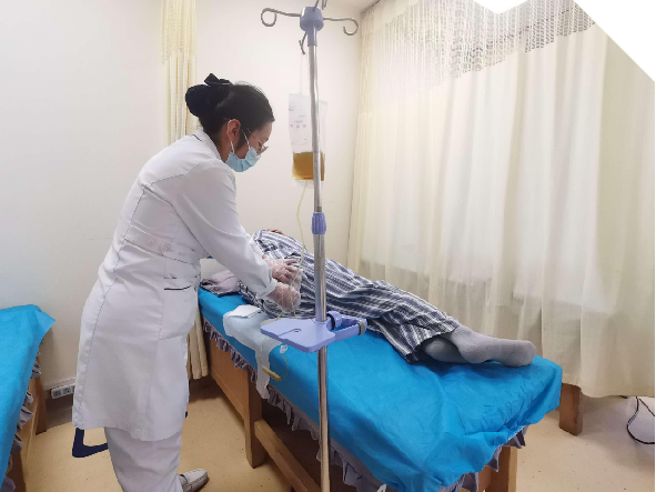 护士长李婷婷和护士秦丽,秦彤彤,王瑶瑶,杨庆等护士各负职责,并积极对其进行了,一系列的针灸,推拿,拨罐,督灸,火龙罐,火龙药灸,经络检测等传统中医疗法。责任护士赵育珍更是事无巨细,每次查房都让病人深受感动。他们秉持着“患者至上,服务先行”的职业准则,致力于为患者提供专业且周到的护理服务。在平凡的工作岗位上,她们用实际行动诠释着医者的初心与使命。(刁会民)