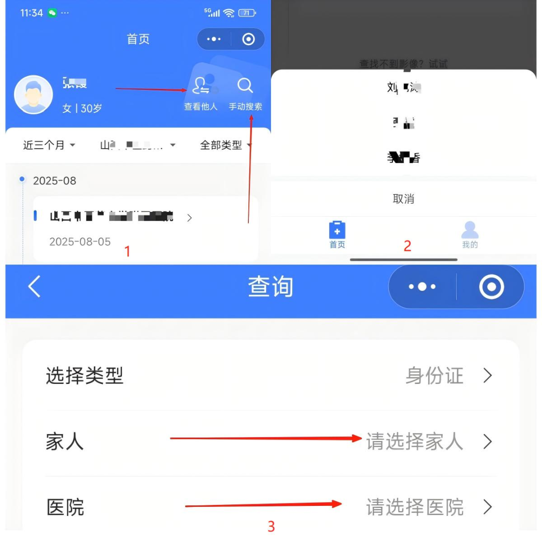 按照提示添加家人信息(如绑定亲属身份等);完成信息关联后,即可调阅家人的影像资料、查看对应报告。