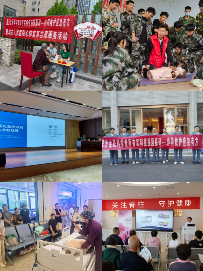 在急救技能普及领域,该领域作为核心板块,呈多场景覆盖特点。医护团队进驻钟家庄社区、市政府办公区、崇实学校及院内科室,通过专题讲座、情景模拟等方式,传授心肺复苏、海姆立克急救法等技能,累计覆盖360余人,推动急救知识从“理论”走向“实践”。9月10日,医院在门诊大厅及病区开展脊柱健康义诊,为百余人提供骨质疏松患者脊柱健康指导。