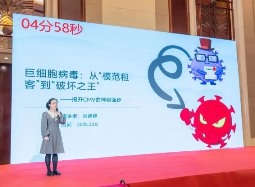 刘婷婷的《巨细胞病毒:从“模范租客”到“破坏之王”》获二等奖,作品以"老租客"和“破坏之王”为喻,生动阐释CMV潜伏和感染特性及检测方法,为公众提供了科学的认知地图和防护指南。