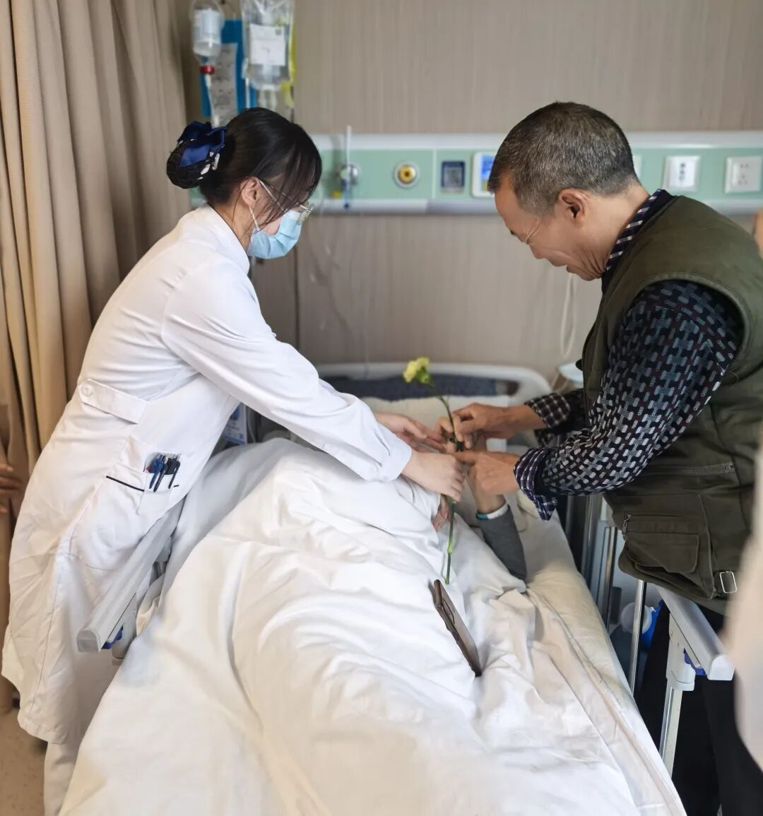 三号病房里,李晋生主任将第一束鲜花送到李爷爷手中,并像老朋友般轻轻拍了拍他的肩膀。主管医生郝珍飞在一旁笑着说:“李爷爷,这可是我们主任的‘特效处方’啊!”这句暖心的话语,让整个病房都漾起了笑声。