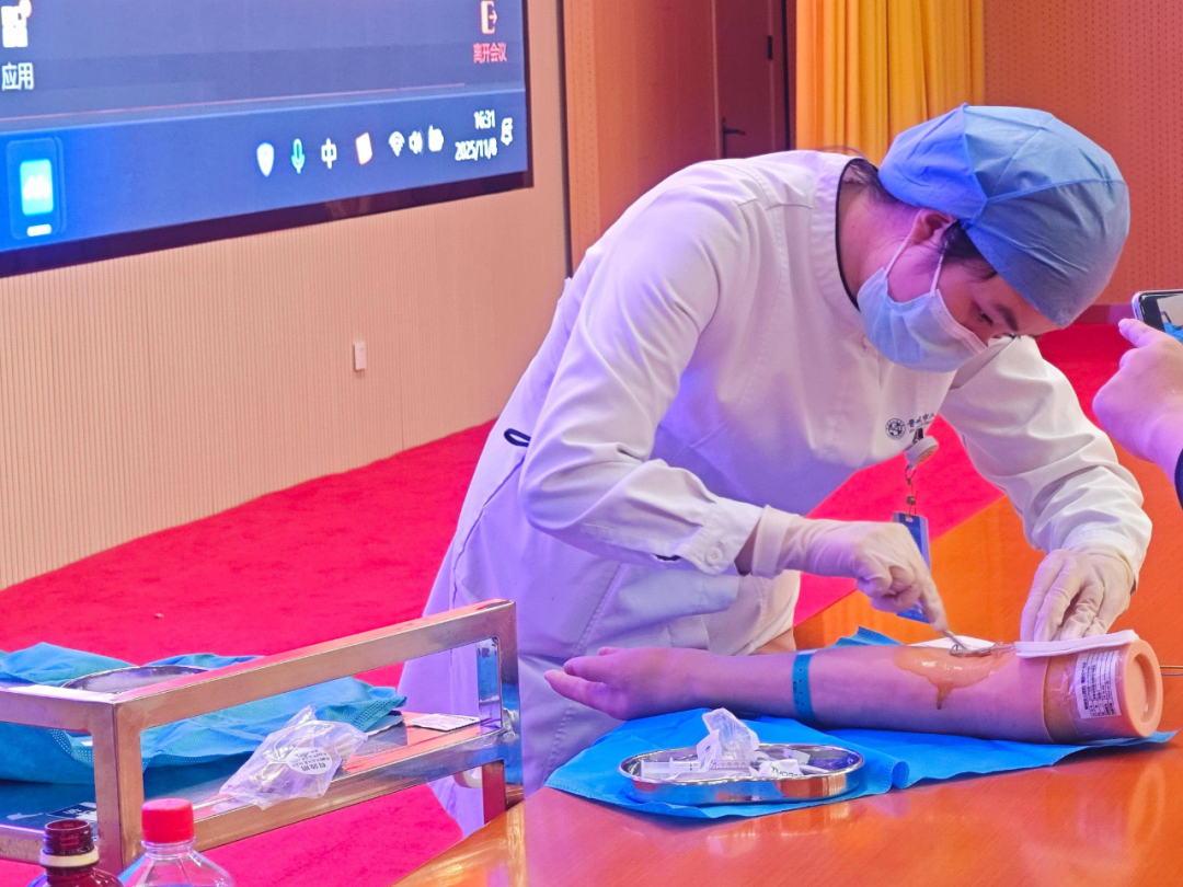 实操实训阶段,汪萌萌、乔佳、秦娟、曹向枝、牛伶俐、成聪等资深护理专家围绕Mini中线导管、PICC导管、输液港维护等核心技术,开展手把手教学指导。专家们精准拆解操作流程,重点演示无菌操作规范、并发症预防等关键环节,帮助参会人员快速掌握各类导管维护的核心技能与实操要点,为临床静疗安全筑牢“硬支撑”。
