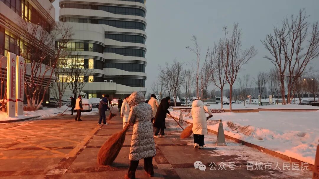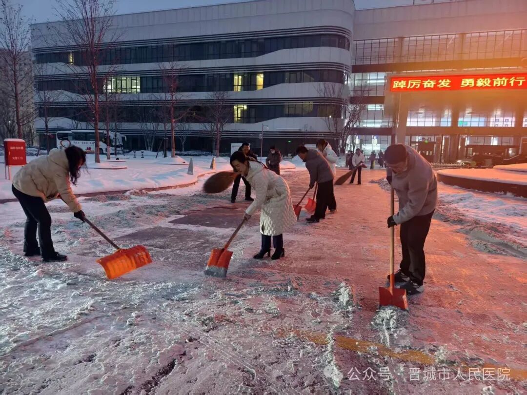 以雪为令显担当,暖心除雪护民生。此次除雪行动,不仅展现了晋城市人民医院党员干部冲锋在前、以身作则的先锋模范作用,更彰显了全院职工团结协作、务实高效的工作作风和“以患者为中心”的服务理念。下一步,医院将持续关注天气变化,健全应急处置机制,提前做好各类极端天气应对准备,用实际行动守护好每一位患者的就医安全,全力筑牢区域医疗服务保障网。