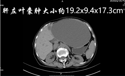 通过CT检查,医生发现张奶奶肝左叶的囊肿大小约19.2x9.4x17.3cm,足足有一个排球那么大。这个 “大水囊” 不断压迫着周围脏器,正是导致她腹痛、腹胀的根源。更棘手的是,张奶奶年事已高,免疫力偏低(检查显示白细胞计数、淋巴细胞绝对值均低于正常范围),且对传统开腹手术充满恐惧,手术意愿低。如何在保证安全的前提下,用最小的创伤为老人解除病痛,成为科室团队亟待解决的难题。