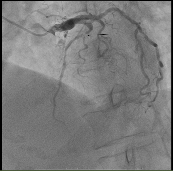 术前心电图呈现出与该病症相符的典型特征。入院后急诊冠脉造影显示,前降支近中段于第二对角支发出前后节段性病变,最重狭窄程度高达98%,情况危急万分。但我院介入团队凭借丰富的临床经验和娴熟的操作技术,顺利引导导丝通过病变部位,随即开展球囊扩张操作,而后精准植入一枚2.75*18mm支架。术后造影结果令人满意,患者的心肌供血状况得到显著改善,为后续康复奠定了坚实基础。