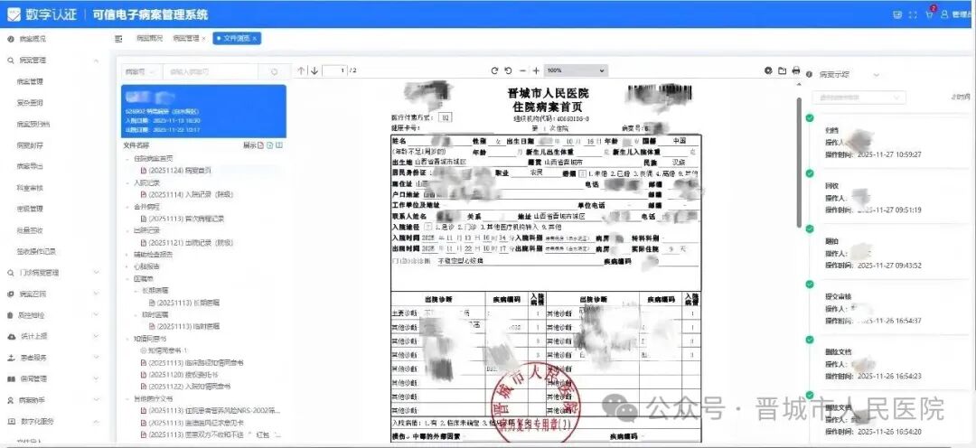此次CHIMA的专题报道,是对我院智慧医疗建设成果的有力肯定,更是对“晋城方案”行业价值的高度认可。未来,晋城市人民医院将继续以患者为中心,深耕数字化转型与国产技术应用,不断优化电子病案管理体系,拓宽应用场景,以更优质的智慧医疗服务赋能区域健康事业发展,为全国公立医院高质量转型提供更多可借鉴的实践经验。