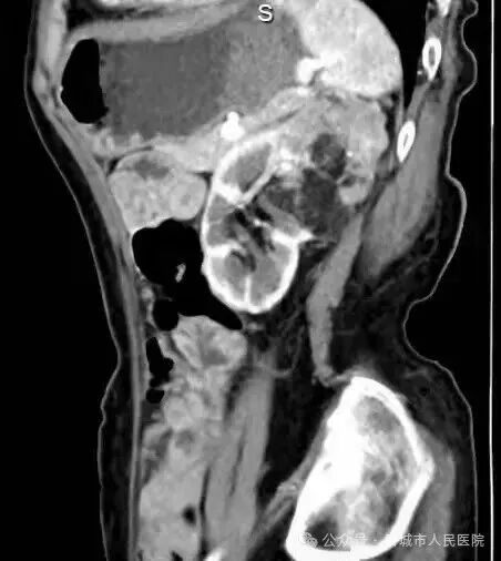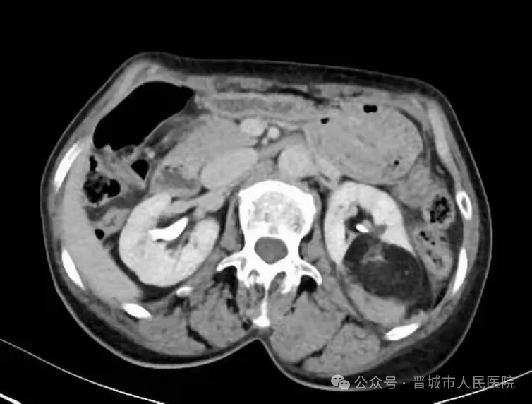据了解,患者因体检发现左肾占位20余天入院,外院检查提示左肾肿物大小约45*55*98mm,接近十公分的肿瘤体积给治疗带来了极大挑战。更为棘手的是,患者年事已高,体质薄弱且营养状况欠佳,腹壁肌肉薄弱导致手术戳卡固定困难,传统腹腔镜手术操作空间受限、难度极高,而患者及家属保肾意愿十分强烈。