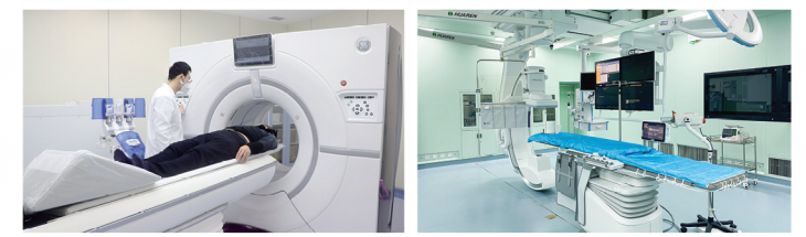 医院设施先进,设备精良。现有大型医疗设备包括西门子双源CT、GE256 排 CT 等 6台高端 CT、飞利浦3.0T、GE3.0T 等4台磁共振仪、飞利浦高端血管造影机4台、联影高端PCT-CT1台、西门子SPECT/CT1台、安科锐高端螺旋断层放射治疗系统(TOMO)1 台、瓦里安直线加速器2台、聚焦超声肿瘤治疗系统(海扶刀)1台、超高清奥林巴斯腹腔镜8套、体外膜肺(ECM0)2台以及罗氏全自动生化免疫流水线等一系列国内外知名品牌的先进设备。
