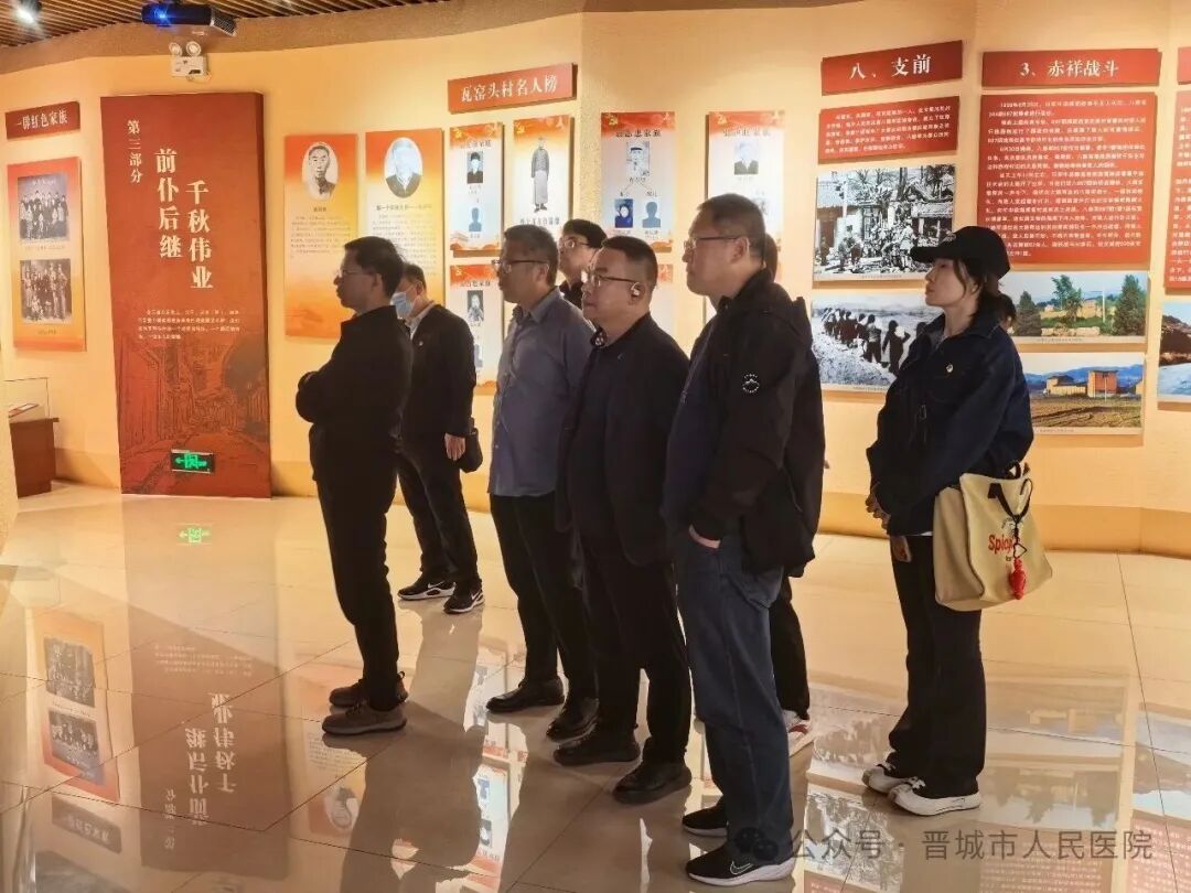 下午,全体参会党员骨干前往高平市瓦窑头村红色教育基地,开展红色教育参观学习活动,接受党性洗礼。活动现场,全体党员身着正装,面向鲜红的党旗,高举右拳,庄严重温入党誓词。铿锵有力的誓言回荡在教育基地,充分表达了全体党员不忘初心、牢记使命,坚守医者初心、护航百姓健康的坚定决心。